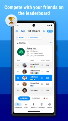 - Create groups and add your co-workers, families, etc., to the leaderboard