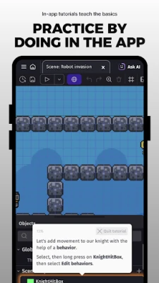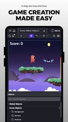 GDevelop is the first game creation app that allows you to build and play any game you're dreaming of, directly on your phone or tablet: