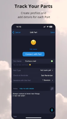 The feature to chat with your parts on your own, allows you the freedom and creativity you need to connect with your different sides (parts) at your own pace. You can also log your conversations with your parts and reflect on them later.