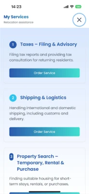Meet our web-mobile app: A professional and social network platform for people from around the world on their relocation journey. This app provides you: