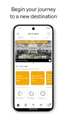 The Rivian Relocation app blends innovative technology with personalized service to create a relocation experience that goes beyond expectations. From discovering neighborhoods and schools to finding local health and wellness resources, our app is designed to provide Rivianites all the tools and information they need for a successful and stress-free relocation — saving you the hassle of figuring everything out on your own.