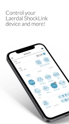 With the ShockLink app, users have control over ShockLink pad placement, two pre-set scenarios, CPR artifact, and eight rhythms for adult, child, and infant: VF, PEA, Brady, Asystole, VT slow, VT fast, SVT and Sinus