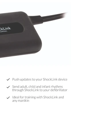 ShockLink enables users to safely integrate live defibrillators into the training environment, creating more realistic and impactful training sessions. ShockLink is compatible with a range of defibrillator models; Philips, Zoll, Physio-Control, Corpuls, Mindray and Schiller.