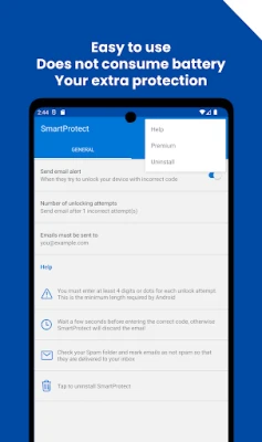 1. Protection against theft: With Smart Protect, you can protect your device against thieves who try to unlock it with the wrong code. The app takes a silent photo and sends the intruder's image by email along with the device's GPS location.
