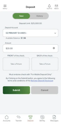 Features: - Check Balances - View Transaction History - Transfer Funds - Pay Bills - Deposit Checks - Pay Loans - Apply for a Loan - Secure Messaging for support